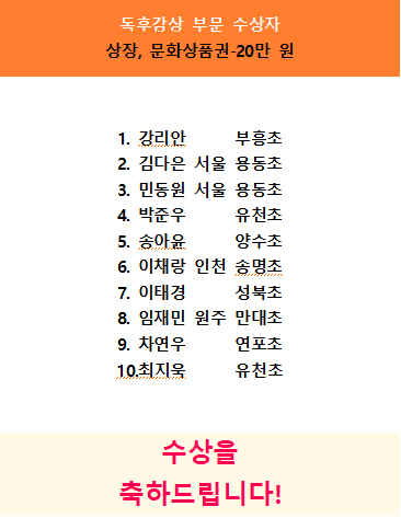 선정된 금상, 은상, 동상, 입선 작품들 모두가 표현하는 언어의 능력이 살아있다. 상은 각기 다르지만, 모두가 시의 맛을 잘 살렸기에 아낌없는 박수를 드리고 싶다. 수상에는 이르지 못하였더라도 참여한 모든 분이 시를 계속 써서 시 문학을 더욱더 아름답게 꽃피워 갔으면 좋겠다.